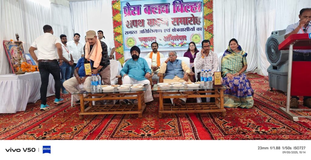 बिल्हा -बहुत पहले से प्रेस क्लब बिल्हा की मांगे चल रही थी,, जो सपना अब सकार हुआ , बिल्हा प्रेस क्लब का गठन हुआ,,जिसका शपथ ग्रहण समारोह 5 सितंबर सन 2025 को संस्कृतिक भवन बिल्हा में रखा गया, कार्यक्रम के मुख्य अतिथि धरमलाल कौशिक व भूपेंद्र सवन्नी रहे’ शपथ ग्रहण समारोह की शुभारम्भ, मां सरस्वती व डॉक्टर,राधाकृष्णन की प्रतिमा पर माल्यार्पण व दीप प्रज्वलित कर किया गया, तत्पश्चात राष्ट्र सम्मान हेतु राष्ट्रगान किया गया कार्यक्रम की अगली कड़ी में मुख्य अतिथि, विशिष्ट अतिथियों का गज माला, साल, श्रीफल व भेट चिन्ह से सम्मान किया गया, विधानसभा बिल्हा, विधायक धरमलाल कौशिक जी के द्वारा नवनिर्वाचित पदाधिकारीयों को शपथ दिलाया गया,शपथ लेने वालों में प्रेस क्लब बिल्हा नवनिर्वाचित अध्यक्ष -सुखनंदन प्रसाद, उपाध्यक्ष- यशवंत मिश्रा,सचिव- राम भारद्वाज रहे,शपथ लेते, पदाधिकारीयों के द्वारा -हम भारत की संप्रभुता, एकता,अखंडता, धर्मनिरपेक्षता और संविधान द्वारा प्रदत्त मौलिक कर्तव्य व मूल अधिकारों की हितों की रक्षा करेंगे, ईमानदारी निष्ठा व समर्पण के साथ पत्रकारिता करेंगे हमारी पत्रकारिता जनहित,राज्यहित एवं राष्ट्रहित में होगा कार्यक्रम में शपथ ग्रहण के पश्चात, बिल्हा के वरिष्ठ एवं अद्वितीय सेवा देने वाले शिक्षकों को मुख्य अतिथि धरमलाल कौशिक व छत्तीसगढ़ क्रेड़ा अध्यक्ष भूपेंद्र सवन्नी के द्वारा उनके उत्कृष्ट शिक्षा कार्य हेतु, साल, श्रीफल, प्रशस्ति पत्र भेंट कर सम्मानित किया गया/ शिक्षक सम्मान पाने वाले शिक्षकों में,विजेंद्र कुमार -सूचना प्रौद्योगिकी ,केदारनाथ दुबे-वरिष्ठ शिक्षक , चंद्रशेखर यादव -कला, साहित्य, कलेश्वर साहू – गरीब बच्चों को निशुल्क कोचिंग,रोहित यादव- शिक्षा,लोचन प्रसाद कौशिक- शिक्षा, आशीष राय- शिक्षा, के क्षेत्र मे,कार्यक्रम में उपस्थित मुख्य अतिथि- धरमलाल कौशिक ने अपनी उद्बोधन में कहा – यह आयोजन पत्रकारिता जगत की निष्ठा,पारदर्शिता और जनहित के प्रति प्रतिबद्धता का प्रतीक है, प्रेस लोकतंत्र का चौथा स्तंभ है,जो समाज की आवाज को सशक्त बनाता है और जनता की मुद्दों को शासन प्रशासन तक पहुंचाने का कार्य करता है /ईश्वर से प्रार्थना है कि सभी पत्रकार साथियों को अपने कर्तव्यों के निर्वहन में सफलता और शक्ति प्रदान करें तथा वे सदैव निष्पक्षता सत्य और जनहित के मार्ग पर आगे बढ़ते रहें ,, : शपथ ग्रहण समारोह में विशिष्ट अतिथि, जनपद पंचायत बिल्हा अध्यक्ष- रामकुमार कौशिक,नगर पंचायत उपाध्यक्ष -सतीश शर्मा, बिल्हा वरिष्ठ समाजसेवी -मनोज वर्मा, बृजभूषण वर्मा,पुनिता डहरिया,बिल्हा नायब तहसीलदार -विनीता शर्मा, मंडल मंत्री धनेश्वरी डहरिया, समाज सेवी व सरपंच -अशोक पाटले पत्रकार मनितोष सरकार, निर्मल स