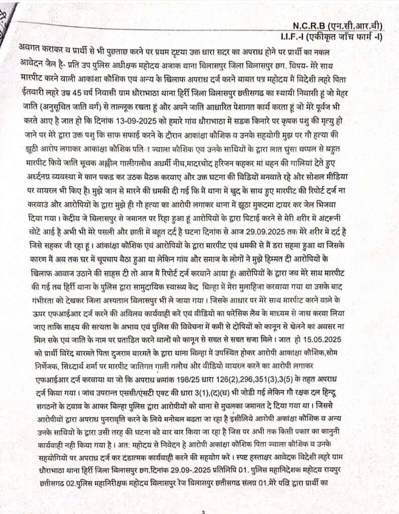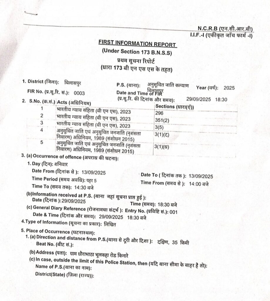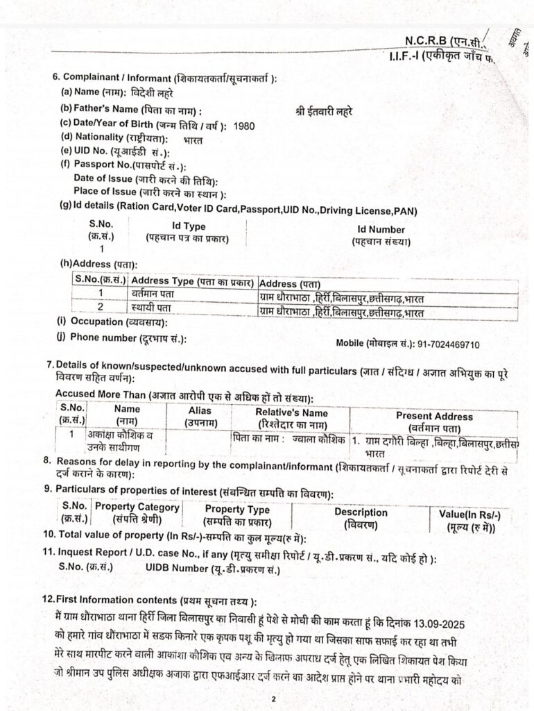 बिलासपुर -श्रीमान उप पुलिस अधीक्षक आजाक द्वारा एफआईआर दर्ज करने के आदेश प्राप्त होने पर, आकांक्षा कौशिक एवं अन्य सहयोगियों के विरुद्ध एफआईआर दर्ज कर ली गई है घटना के संदर्भ में संपूर्ण जानकारी, एफआईआर, छाया प्रति सलग्न…